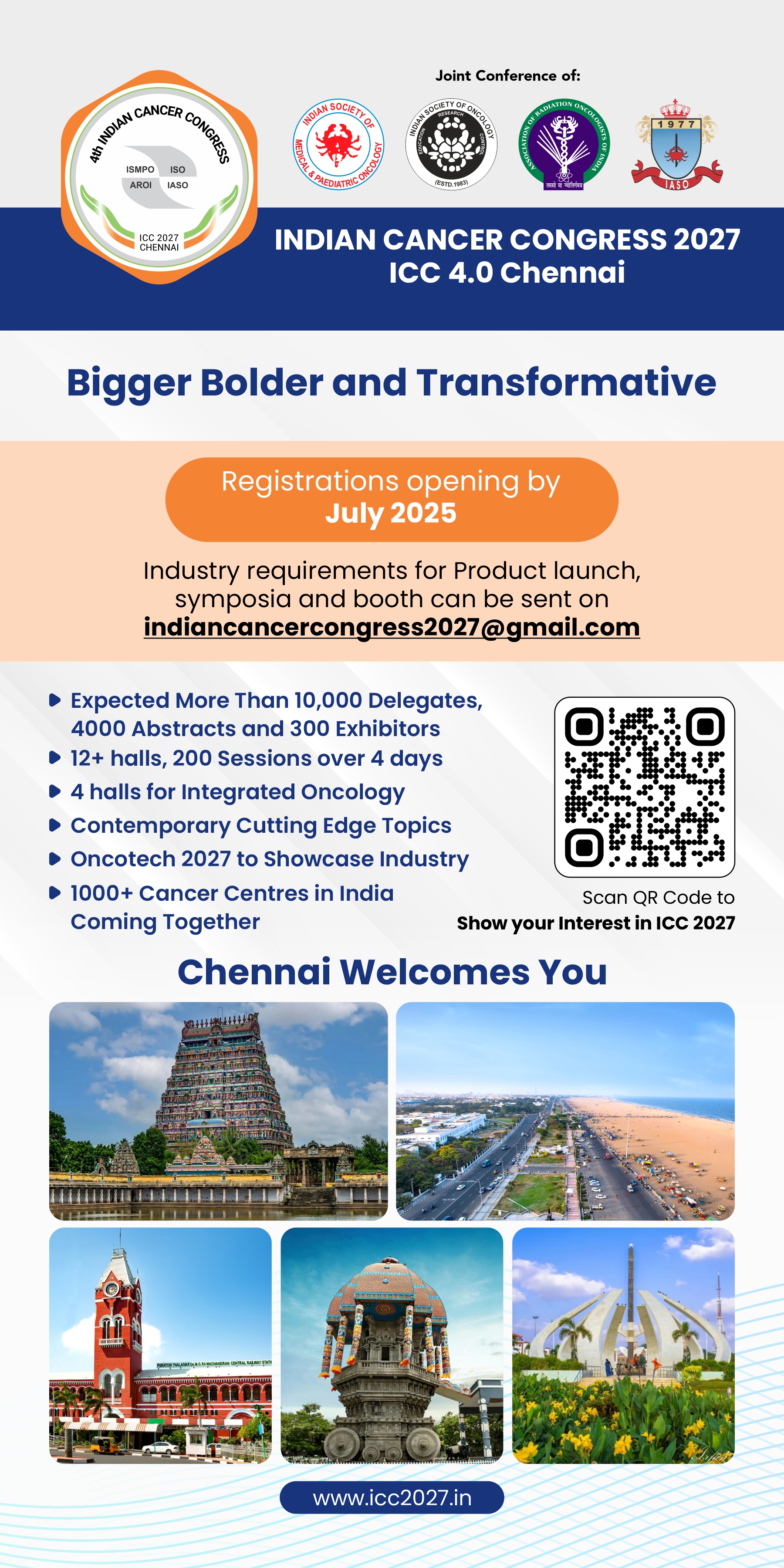 Indian Cancer Congress brings together Oncologists, Scientists, Allied Specialists, Ancillary Service Providers, Advocacy Groups and Policy Makers involved in cancer care in India.